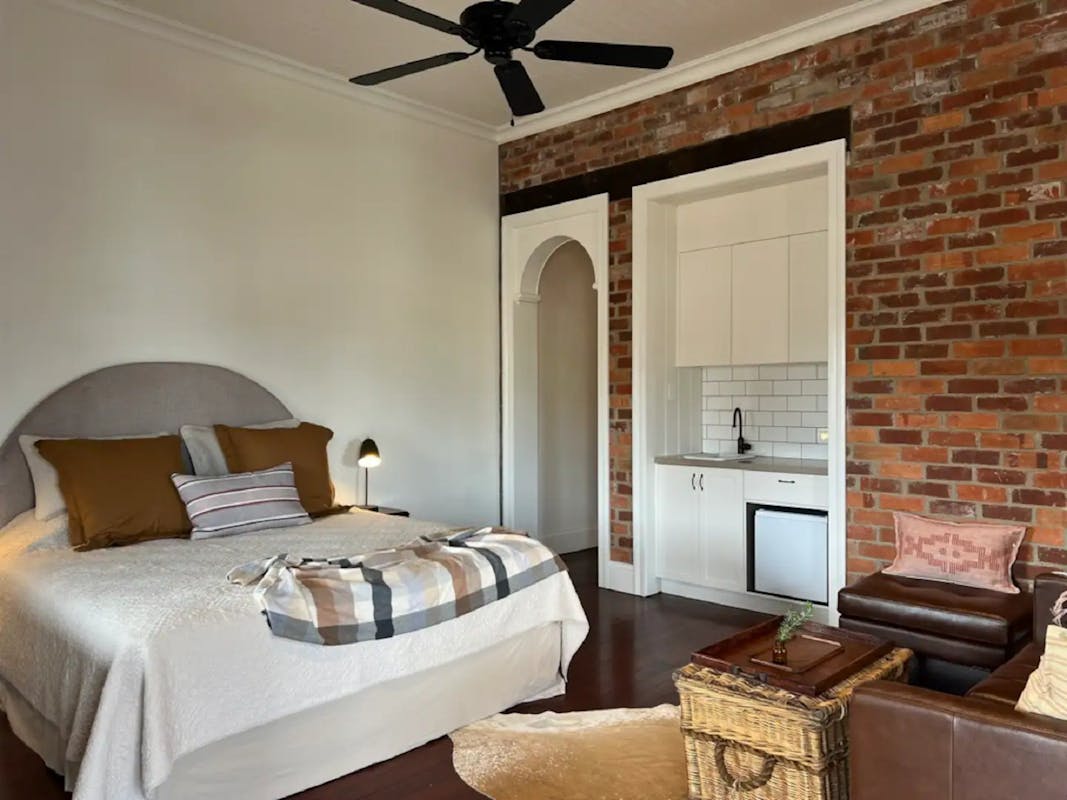Stay in one of The Argyle Hotel’s bespoke and spacious accommodation suites, where comfort meets timeless charm. Each suite is thoughtfully designed, featuring a cozy lounge area, a private ensuite bathroom and a simple kitchenette for added convenience. Some suites open directly onto the hotel’s stunning wide verandas, perfect for a morning coffee or evening drink while taking in the serene views of the town or catching glimpses of the nearby Clarence River. Every suite is individually styled, blending classic elegance with modern amenities to create a relaxing retreat where you can unwind and feel at home. Whether you’re here for a weekend getaway or an extended stay, our suites offer the perfect blend of comfort, space, and style for a truly memorable experience.