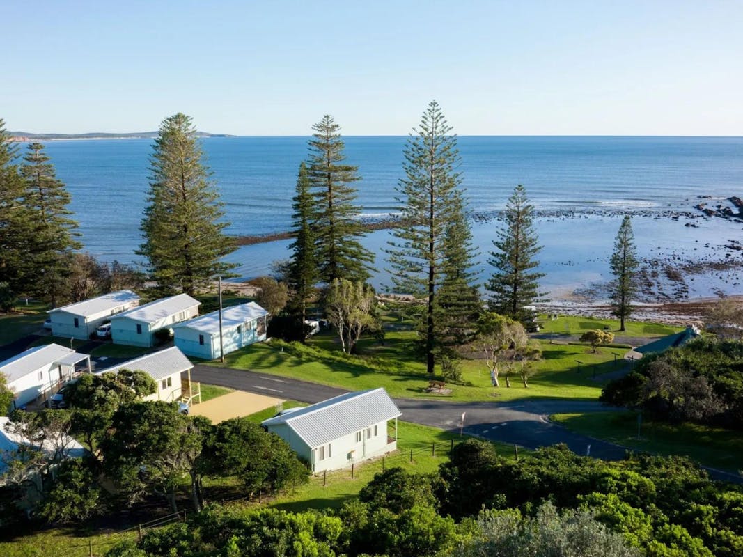 The park offers a range of powered and unpowered sites, cabins, and villas, many with incredible ocean views.