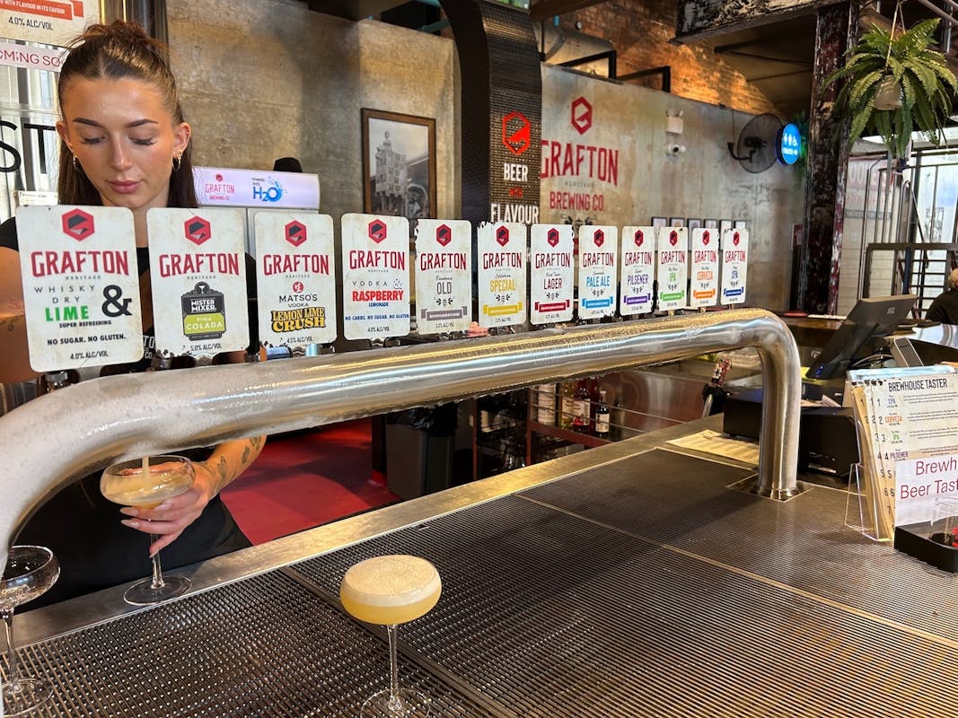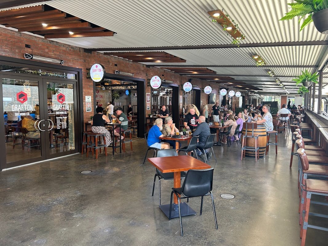 The Grafton Brewing Co. is a heritage brewery featuring large open spaces paying homage to its industrial heritage from when it was first opened as the Grafton Brewery in 1952. The brewery includes an open bar area, large outdoor mezzanine, booth seating, and a VIP Red Room, with food featuring a southern-style menu. 12 brewing tanks produce up to 3500 litres of beer each week, and products exclusively from Australian-owned suppliers, and other independent distillers and manufacturers are featured in the bar.