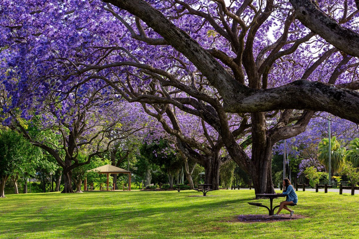 During October and November, the Jacaranda Trees blossom and light up the park with purple blooms.