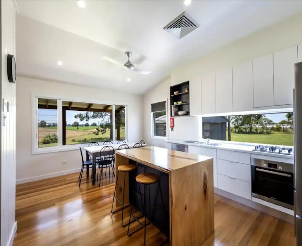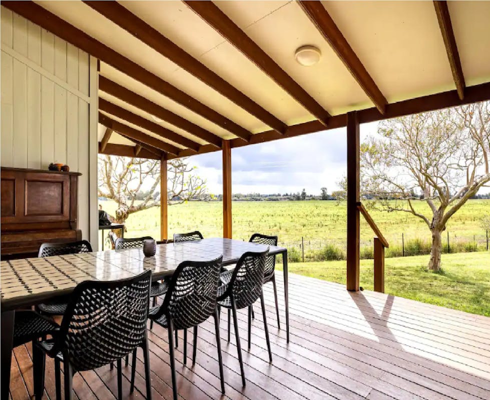 Self-contained house on a farm fronting the Clarence River. Enjoy the relaxing views across the paddocks to the river. Great location to explore Clarence Valley and just 10 minutes from Grafton. This farm house has just been renovated in a contemporary style and provides accommodation for up to 10 people. There are two queen rooms, including one with ensuite. The third bedroom can be set up with a king bed or two singles. Adjoining the twin room is the bunkroom which can sleep four people. Guests are welcome to explore the farm with walks along the Clarence River and Swan Creek which form the boundaries of our property. The two waterways are great spots for fishing, canoeing or enjoying the birdlife.