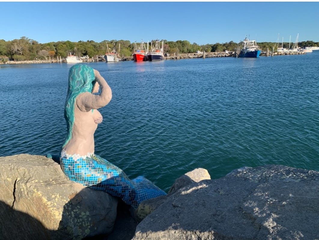 The Iluka Mermaid, a captivating sculpture gracing the rock wall at the Trawler Harbour, was created around 1990 by a man restoring the historic timber boat The Derwent as a heartfelt gift to the Harbour. Over the years, this mermaid has become a cherished symbol of protection for those who venture out to sea, inspiring the local community and celebrated by artisans, locals, and visitors alike.