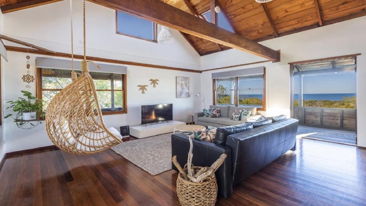 Situated at the Eastern most tip of Angourie Headland with spectacular views across the Yuraygir National Park toward Back Beach. Built from natural timbers, Blackbutt and Tallowood with a verandah that surrounds the home, The Point gives you a view from every window and with only one neighbour, you have the Point to yourself.