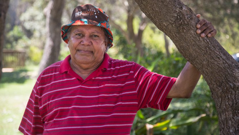It takes no time at all to find what we came for. “I arrived a bit earlier,” Uncle Ron says, producing three small yellow fruits from his bag. “They’re wild passionfruit… taste them.” We’ve met Yaegl elder Ron Heron at
