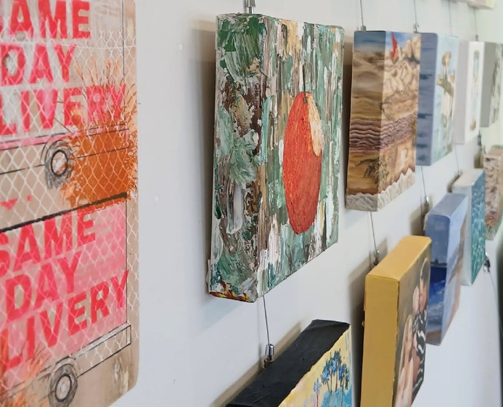 The works, all on a given eight by eight-inch canvas, showcase the talent of local and regional artists, emerging and established.